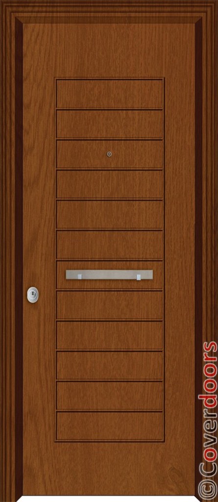 - Φύλλο πόρτας με μονή θωράκιση από γαλβανισμένη λαμαρίνα με ειδική σκληρότητα. Το εσωτερικό φύλλο θωράκισης, έχει 2 κάθετες νευρώσεις που ενισχύουν τη θωράκιση.