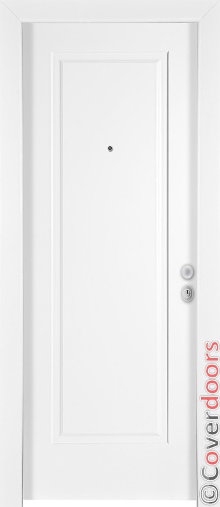 - Door leaf with single galvanized outer steel plate. The internal steel plate has 2 vertical ribs that fortify the armor.